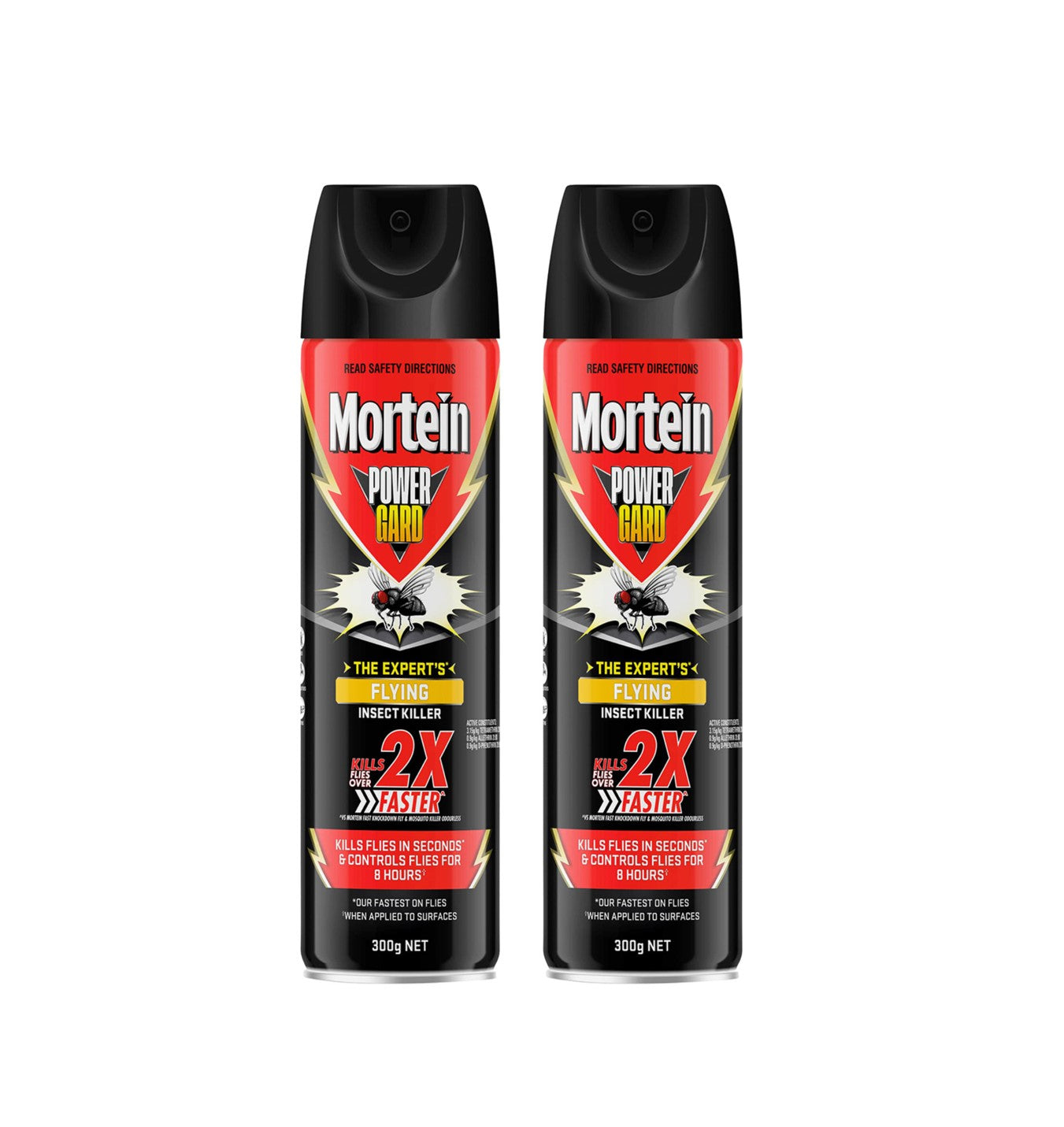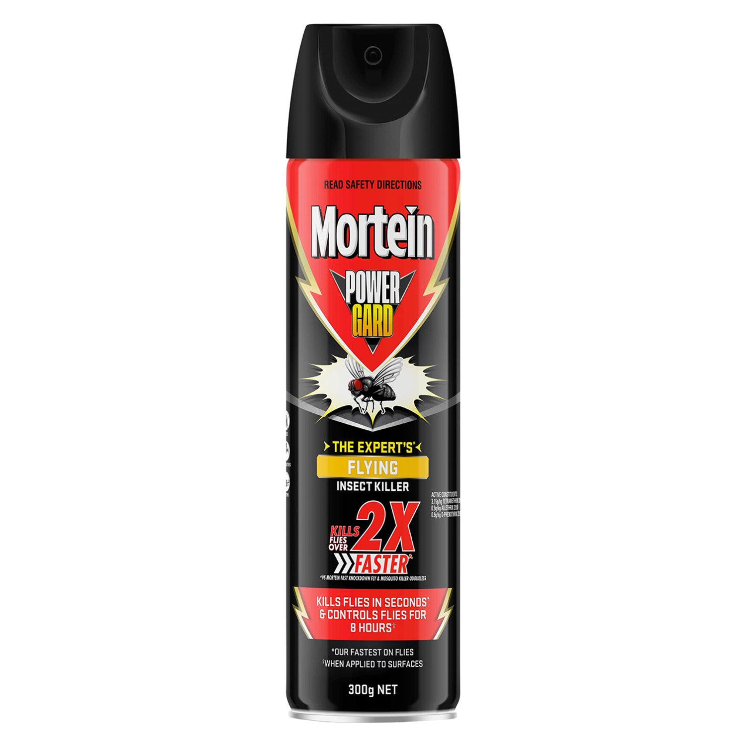 Mortein PowerGard Insect Spray Flying Insect Killer kills flies in seconds & controls for 8 hours (when applied to surfaces).